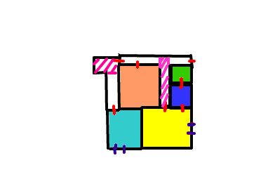 ANK「なるほど。これは中々広い庭ですね。ただ、小間使い部屋(水色)の窓から出て、王の寝室に行くという方法もあるにはある」